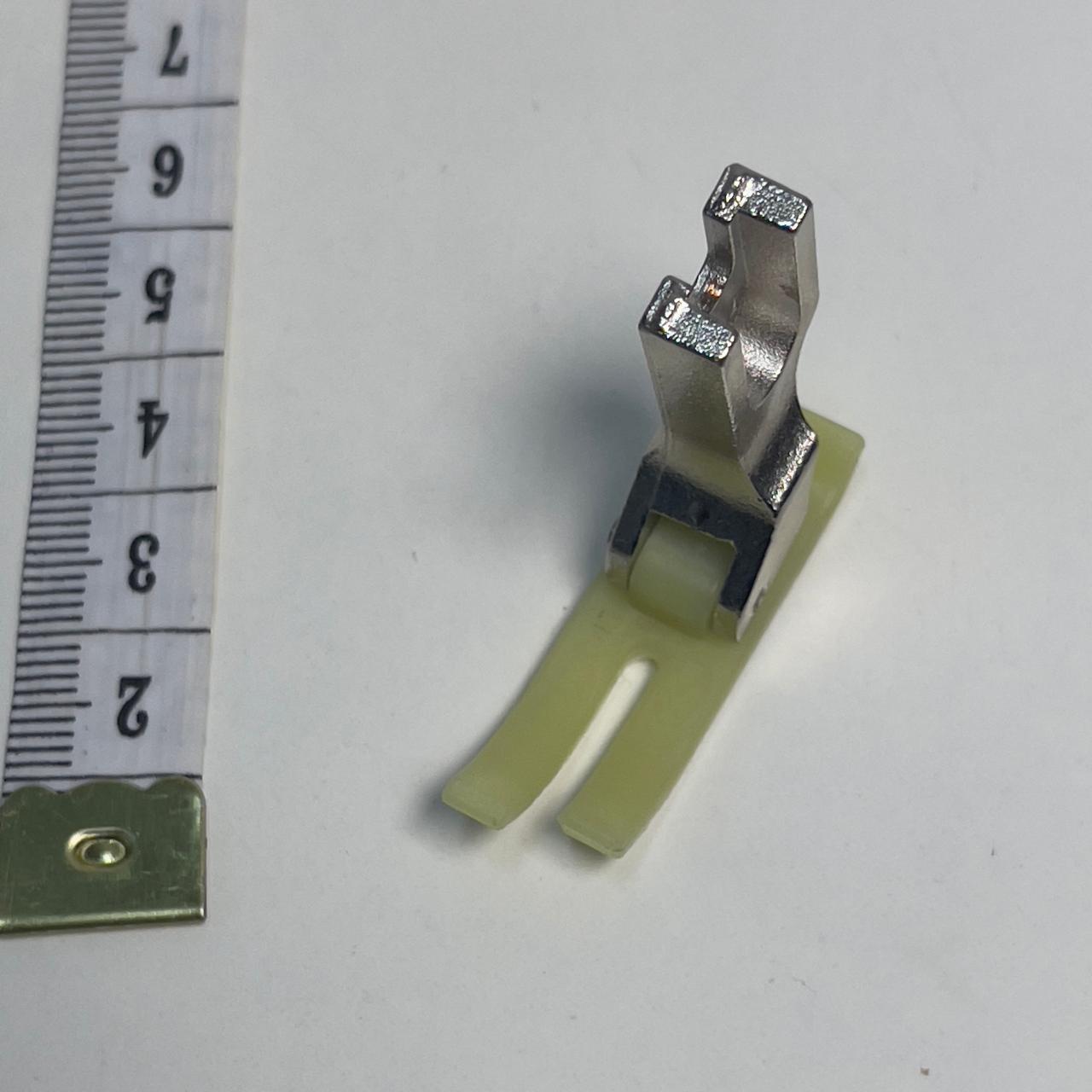 A specialized sewing machine foot designed to glide smoothly over fabrics that tend to stick to standard metal feet