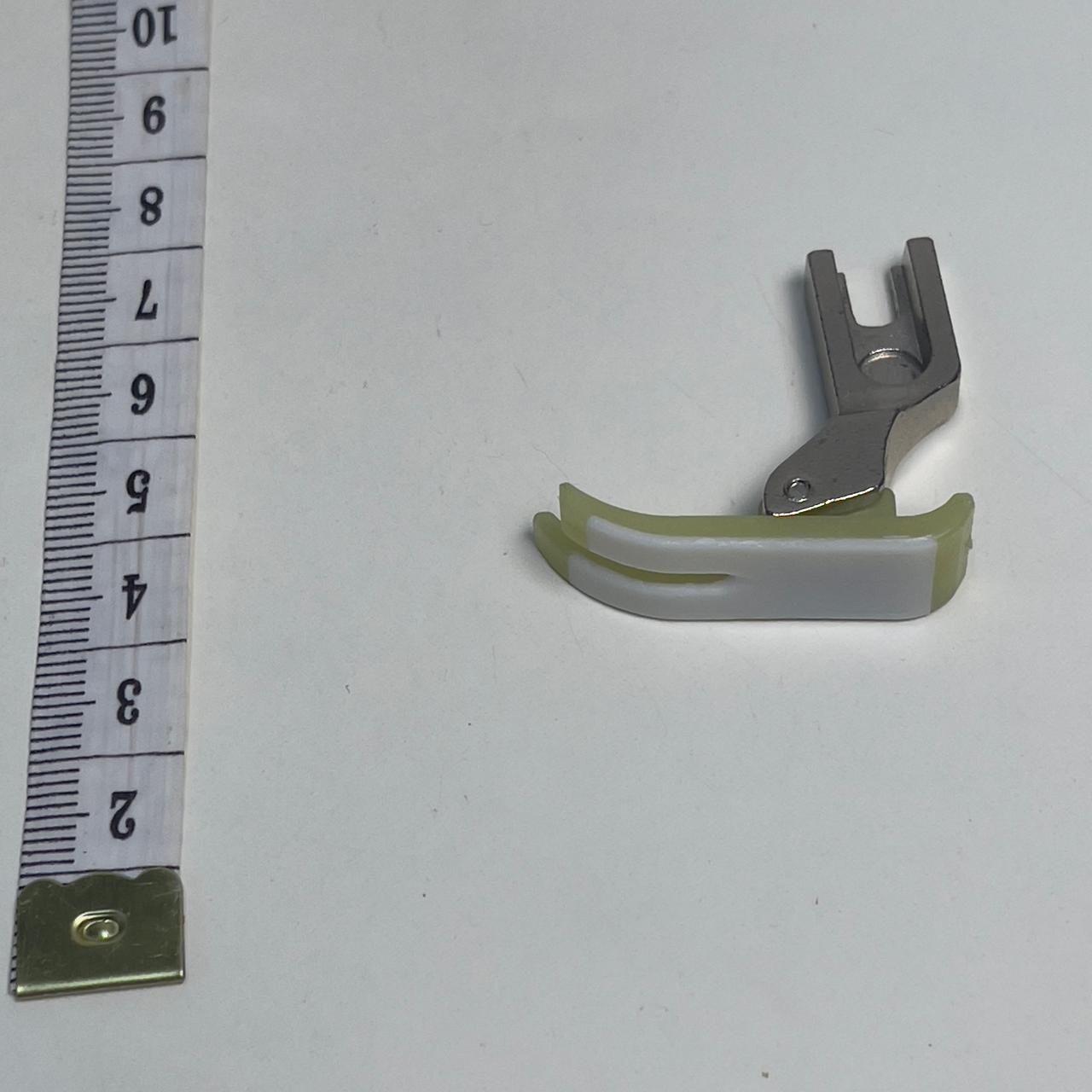 A Teflon sewing foot, also known as a non-stick foot, is a specialized sewing machine foot designed to glide smoothly over fabrics that tend to stick to standard metal feet, such as leather, vinyl, and plastic. It is coated with Teflon (PTFE) or a similar non-stick material, preventing drag and bunching while ensuring even stitching and better fabric control.